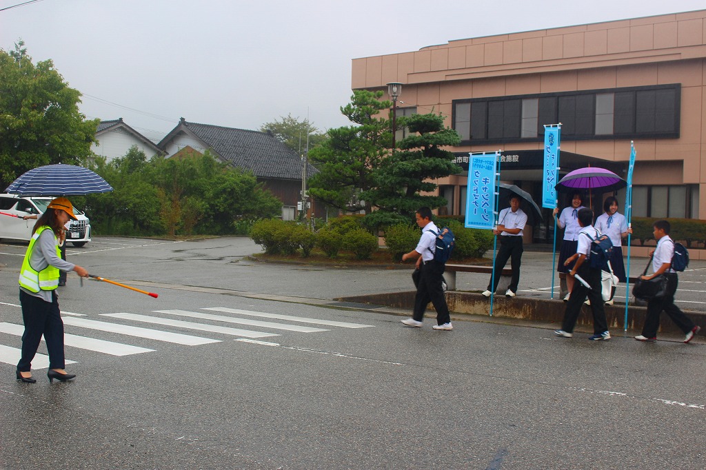 本日(9月24日)より、名舟バス停前、本校前横断歩道で保護者、