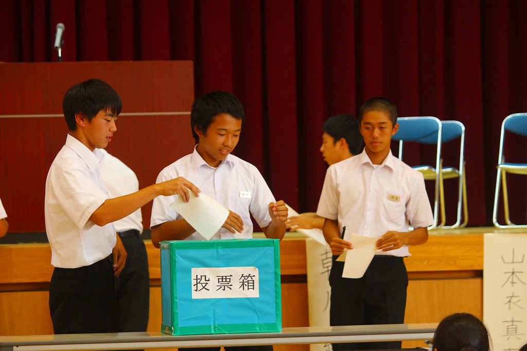 25日(水)の6限目に後期生徒会役員の立合演説会と投票が行われ