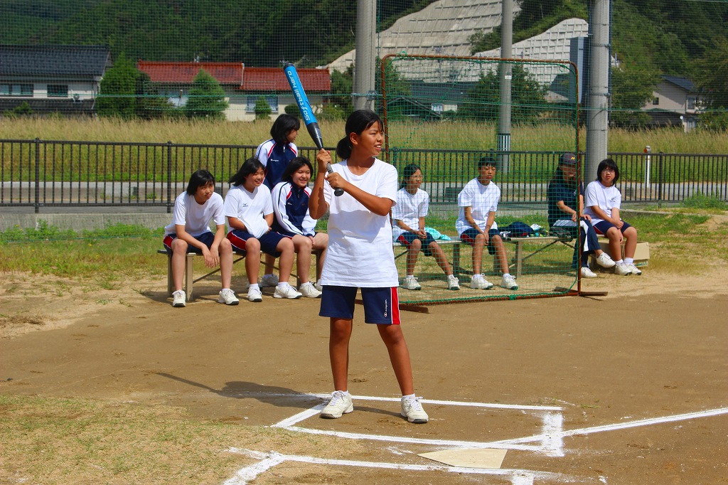 男女に分かれ、職員も参加してソフトボールを楽しみました。