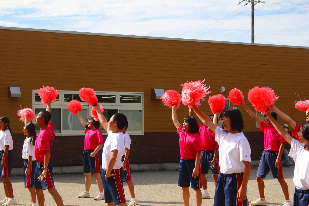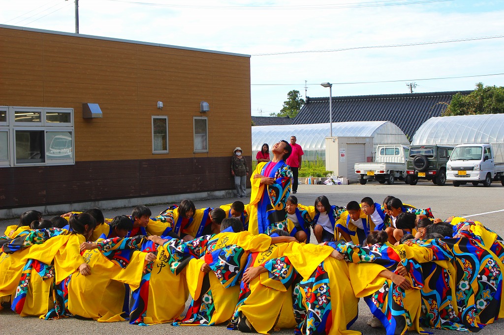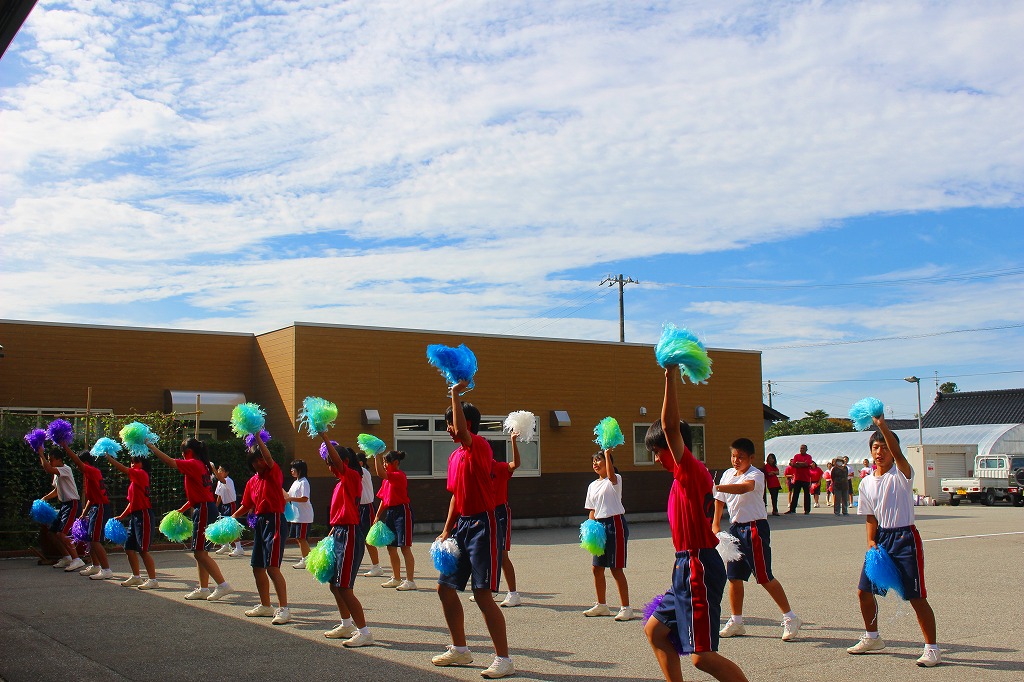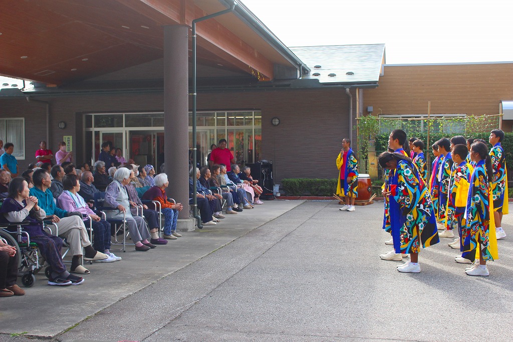 秋晴れの中、全校生徒で老人ホームみやびに訪問し、よさこいと体育祭応援