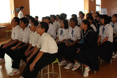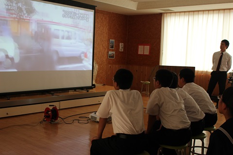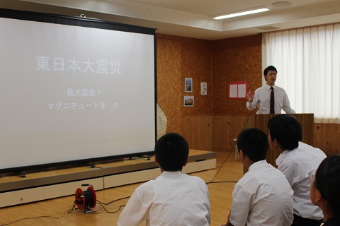 10月2日(水)、社会科の授業で防災事前学習を行いました。生徒は、東日本大震災の映像を見ながら、地震や津波の恐ろしさについて感じ取っていました。どんな状況になるか予測し準備すること、最悪の状況を想定して訓練することの大切さを学んでいました。