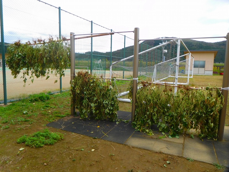 7月に苗を植えた小豆の収穫を行いました。そして、小豆のさやを天日干し