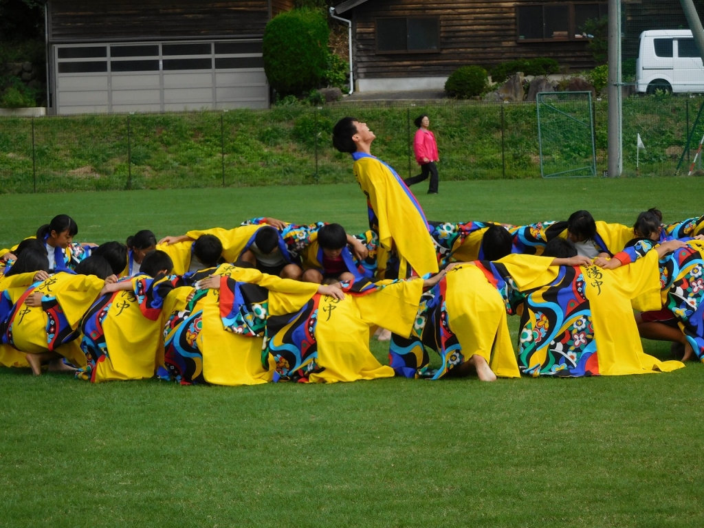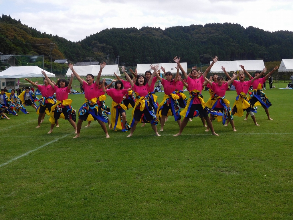 全校生徒で「よさこい」を披露させていただきました。