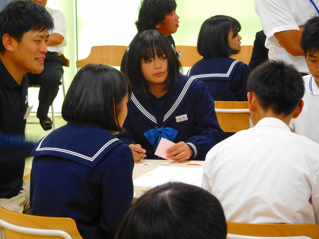 各中学校から2名ずつの6人で1グループを組み、計9グループで討論