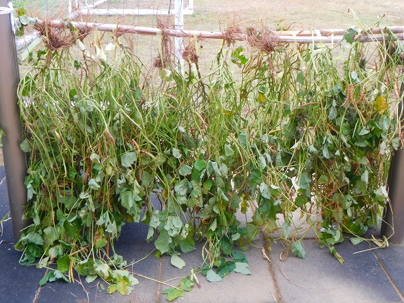 7月に苗を植えた小豆の収穫を行いました。そして、小豆のさやを天日干し