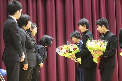 異動される先生方に代表生徒から花束とメッセージが渡され、