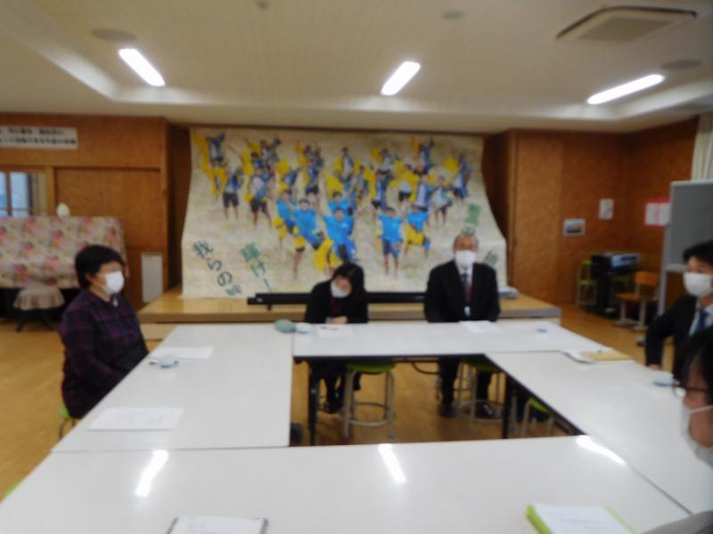 学校評議員3名、PTA役員3名の方に、学校評価(後期)をして