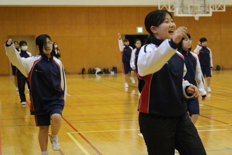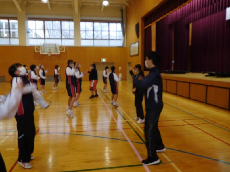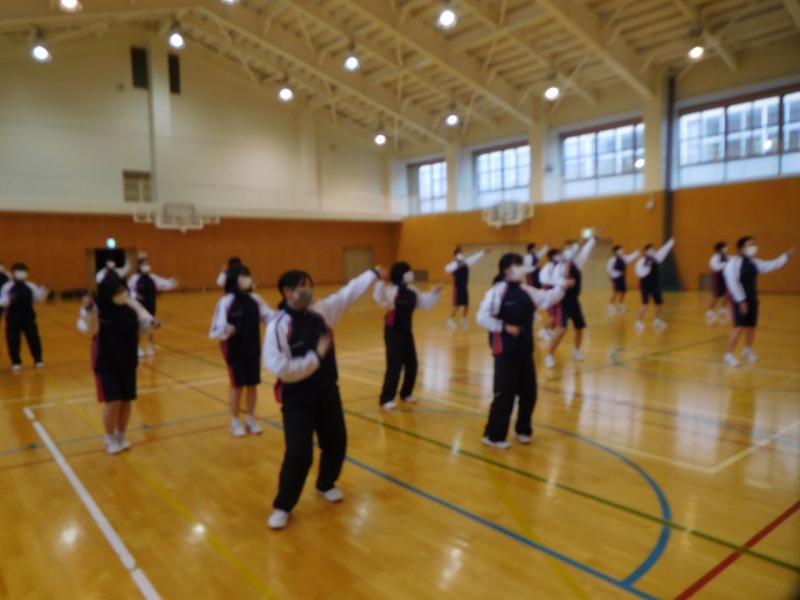 曲に合わせてエアロビクス・ダンスを行いました。エアロビクスは全身持久力を高め