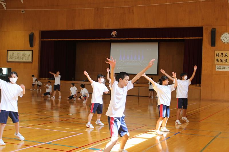 まず、全校生徒でよさこい練習をします。その後、3年生は