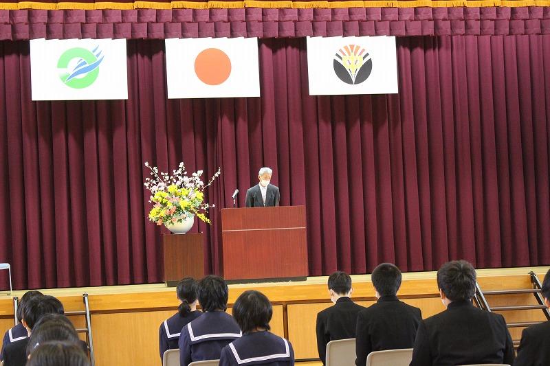 輪島市市長部局総務部長 岡本文明様,輪島市教育委員会教育委員 左古隆様,教育部長 坂口勇様をはじめ,ご来賓・保護者の方々にご臨席賜り,第12回卒業証書授与式を挙行することができました。