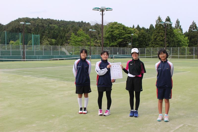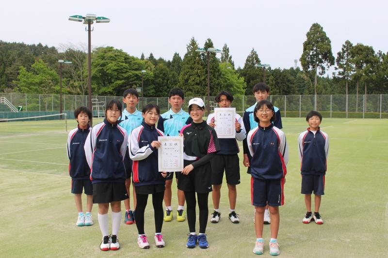 女子ソフトテニス部は、予選リーグを2位通過し、決勝トーナメントで団体3位となりました。