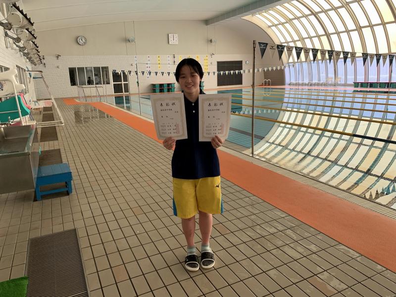 水泳競技では、登岸さんが、バタフライの100m、200mで1位、、自由形200mで2位でした。