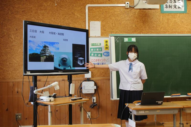 3年生は、修学旅行で学んだことをスライドにまとめる活動を行いました。