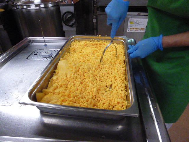 また、そぼろごはんの中の炒り卵は、スチコンのスチーム機能を使って作っています。