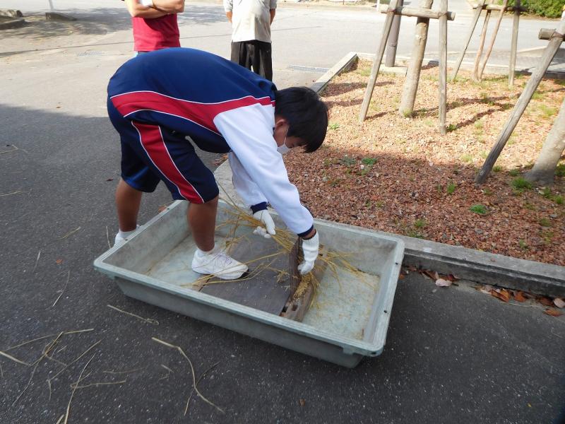地域の向さんのご協力で、1年生が総合で千歯こきの体験をしました。ご指導ありがとうございました。