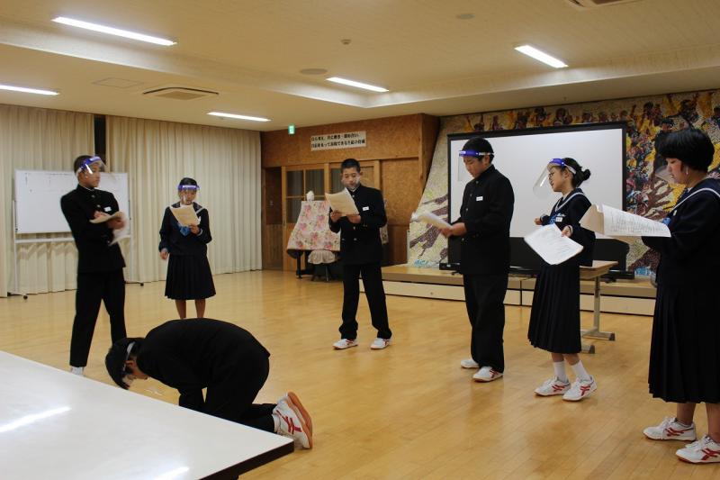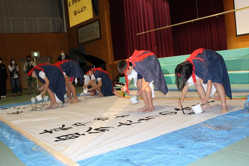 保護者、地域の方々に感謝の気持ちを伝えようと、演劇、書道パフォーマンス、合唱、