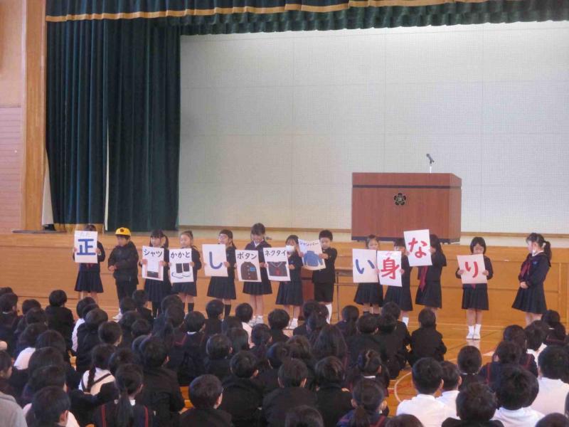 また、1年生による生活目標「正しい身なりをしよう」の発表がありました。みんなに聞こえる大きな声で堂々と発表する姿がとても素敵でした。