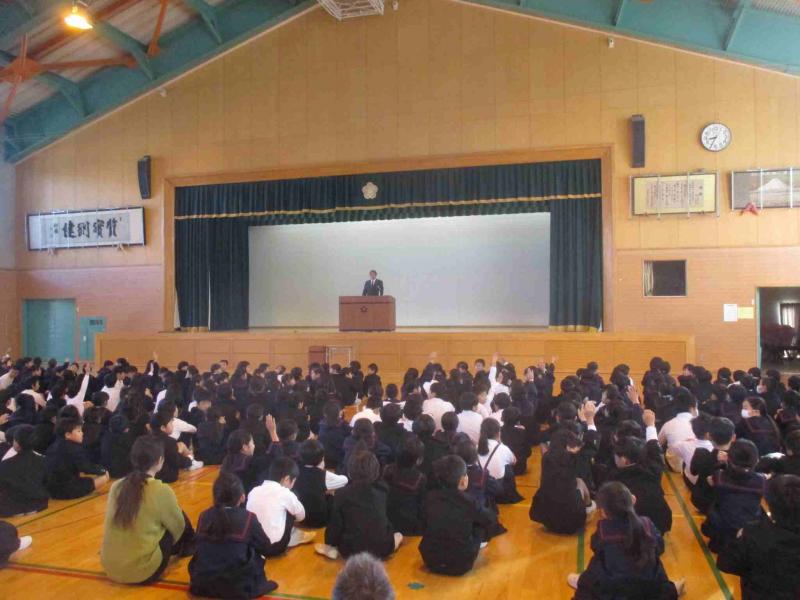 4日(火)は、全校集会を行いました。