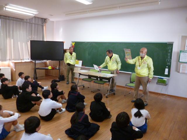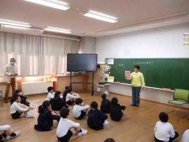 柴田様は、ご自身の体験などについてスライドを交えながらお話くださいました。児童たちは、平和の尊さについて深く考えながら、真剣に耳を傾けました。