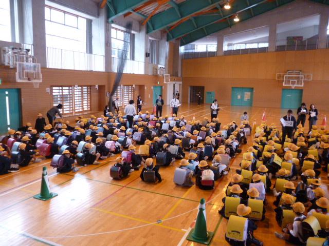 この訓練は、非常災害時に備え、児童が自らの生命・身体の安全を守る方法を身に付けるとともに、児童を安全かつ迅速に保護者の皆様へ引き渡せるようにすることを目的に行いました。