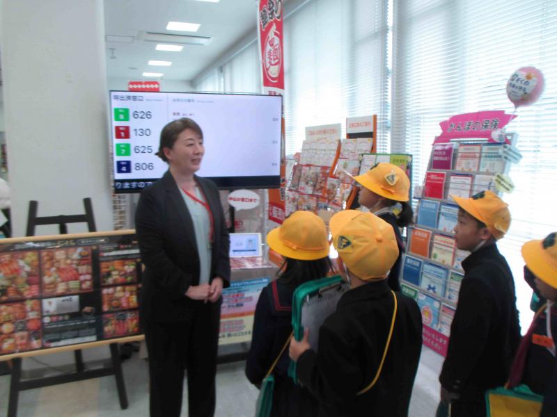 子どもたちは、お店の方がお客様のためにどのような工夫をしているかを見つけようと、店長のお話を真剣に聞き、商品の陳列方法など、様々な工夫探しに熱心に取り組みました。