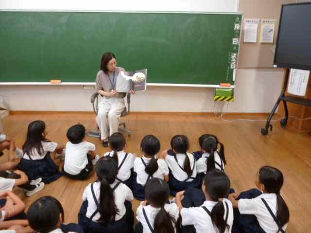 この日は、担任以外の先生方がそれぞれのクラスで読み聞かせを行いました。いつもとは違う先生の声や、選ばれた新鮮な物語に、子どもたちは集中して耳を傾けていました。