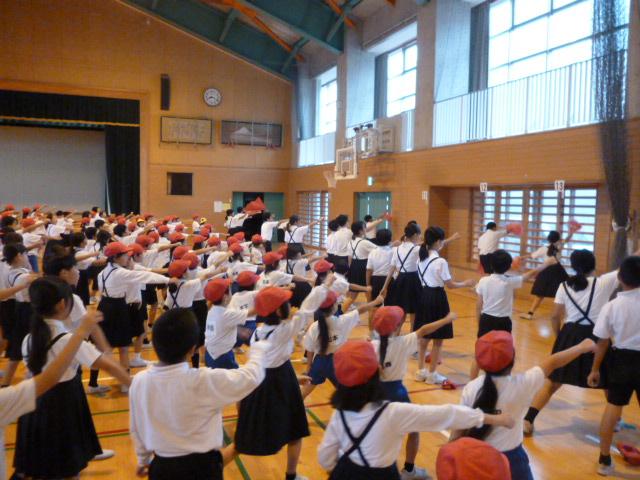 1・2年生は、「チェッコリ 玉入れ」の練習に取り組みました。