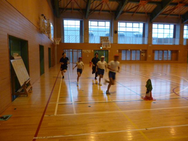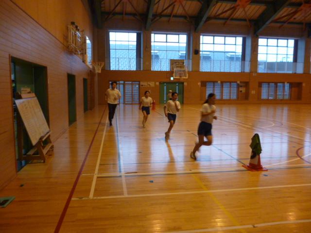 あいにくの天候のため、体育館にてインターバル走とミーティングを実施しました。