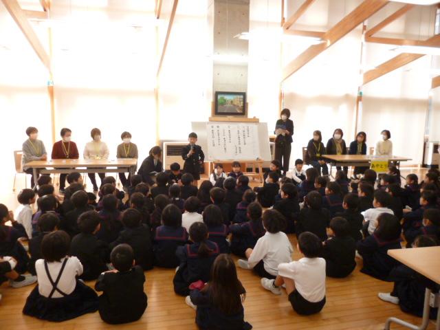 15日(月)、6年生が「寒さに負けないよう、全校を盛り上げ楽しませたい」という目的のもと、全校を巻き込んだイベントを行いました。イベントは全部で3回、今日は2、4年生を招待しました。
