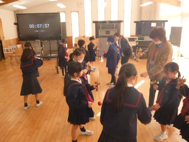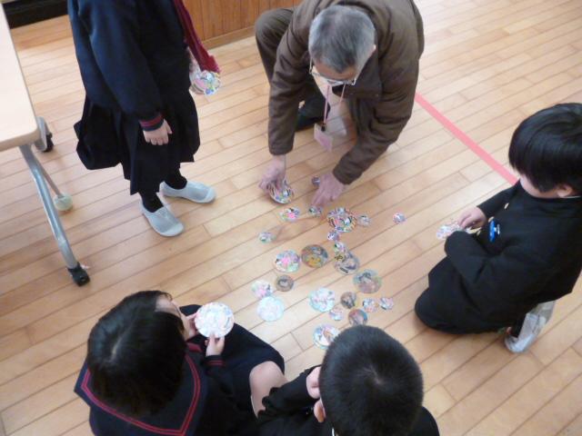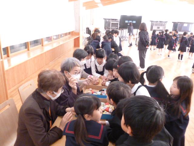 17日(水)、1年生が祖父母の方々を講師にお招きし、「昔遊び」の学習を行いました。「おはじき・お手玉・こま・けん玉・あやとり・めんこ」コーナーで、それぞれの遊びを体験しました。講師の先生方からうまくいく「コツ」を優しく教えてもらいながら、子供たちは昔ながらの遊びの楽しさを味わうことができたようです。遊びを通して講師の皆様と心を通わせ、温かいつながりを感じられたことも、子供たちにとって大変貴重な経験となりました。ご協力いただきました講師の皆様、誠にありがとうございました。