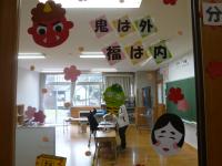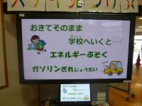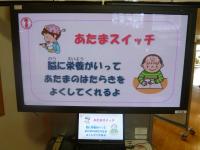 玄関の大型テレビには栄養教諭からの食育VTRが流れています。