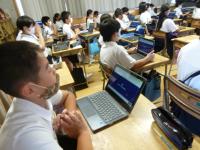 グループでの話し合いも、全体での話し合いも、Chromebookを通して行っています。