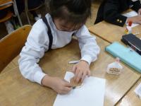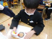 6年生は、明日の卒業式のためのコサージュを作っています。