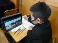 6年生は図工です。Chromebookで撮った画像をもとに下書きをしています。