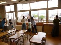 保護者と児童、職員合わせて82名が参加し、校内の窓ガラスや棚の上の拭き掃除、洗面台磨きなど、普段の掃除では手が届かない場所の掃除を行いました。