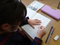 3年生の教室では集中してノートを書いています。字が丁寧できちんとしているのが3年生の強みです。