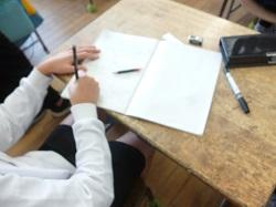 に溶けるのか?実験後に自分の考えを集中してまとめていました。