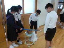 グループで実験を繰り返しながら、力点・作用点・支点の言葉を使い