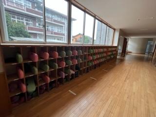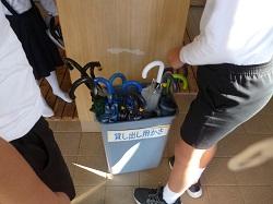 両手で踵を揃えて入れる子や傘立てのかさを揃え直す高学年もいます。