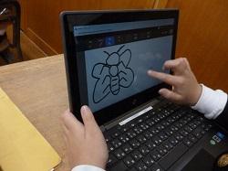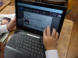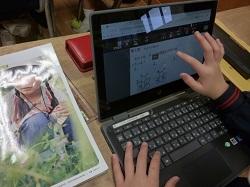 最近は、タブレットで自分の考えや思いを表現することも行っています。