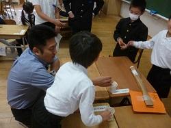 津幡警察の警察官の方に来ていただき、もの盗んだ事案を例に子供たちが考え、