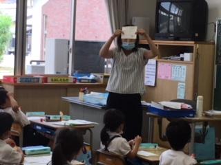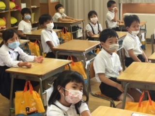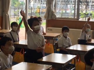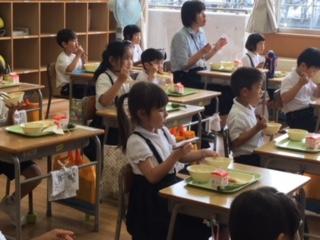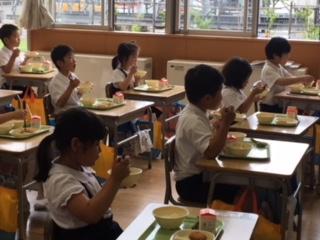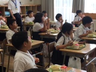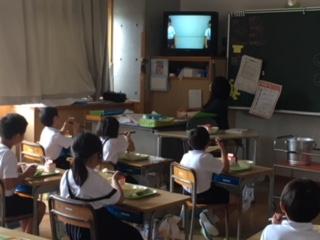 給食を食べながらでしたが、1年生はうれしい表情で聞いていました。