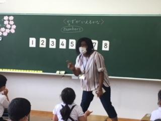 その後は、数字を英語で発音してみました。Sadeさんの大きなジェスチャーとパワーにのせられて、どの子もSadeさんの声に合わせて、楽しく発音していました。