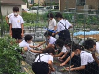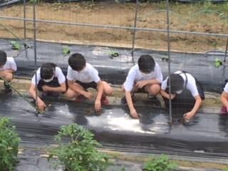 臨時休業のため時期は少し遅れましたが、18日(木)に4年生がヘチマの苗を畑に植えました。植物の成長と環境との関わりを調べる活動を通して、理解したり観察したりする力を身に付けるとともに,科学的な思考力も鍛えます。大きく成長するようにという願いが、姿勢のよい学習態度からも伝わってきました。