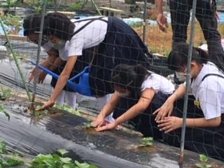 4年生・ヘチマの苗を植えました!