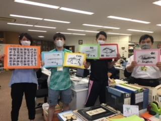 津幡町字津幡に在住の酒井知克さんから、魚偏の漢字をモチーフにした作品を数十枚寄贈していただきました。コロナ対策の中で頑張っている子どもたちや先生方に、作品を見て元気になってほしいと願われて寄贈してくださったそうです。絵の素晴らしさはもちろん、添えられたコメントから酒井さんのユーモアと温かさが伝わり、作品を見た職員からは、思わず笑みがこぼれていました。たくさんの素敵な作品をありがとうございました。大切に使わせていただきます。
