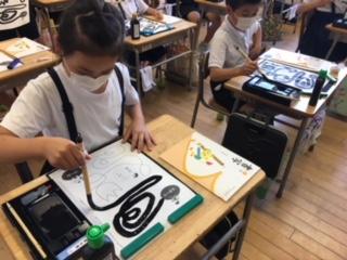 3年生は、初めての毛筆です。この日は、筆遣いを学んでいました。書写指導では、丁寧で整った文字を書く力をつけるだけでなく、静かな環境の中で文字を書くことで、集中力を高めることもできます。