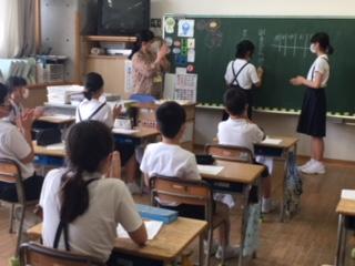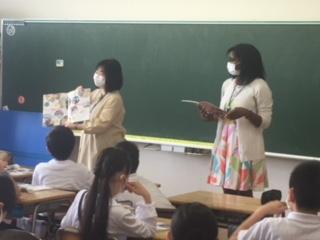 今年度から、3・4年生は週1時間の英語活動、5・6年生は週2時間の英語の時間が始まりました。3・4年生は英語専科の先生と、5・6年生はALTのシャーデー・モーア先生と英語専科の先生の2人体制で学習します。ALTのネイティブな英語を聞き、英語に慣れ親しむことが大切です。小学校で楽しく英語を学びながら、中学校英語につながる力をつけていきたいですね。