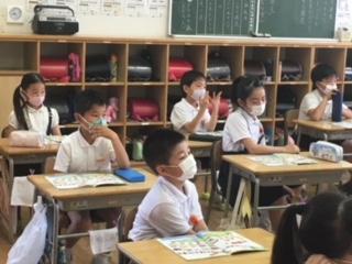 授業が再開し、週1回の道徳の授業も各クラスで実施しています。コロナ感染からくる不安な心を、自分や友だち・家族などの周りの人や自然等に目を向け、自分を見つめることで、少しでも開示できたらと思います。今週教室前を通りかかると、1年生では「たのしいがっこう」2年生では「大きくなったね」をテーマに話し合っていました。