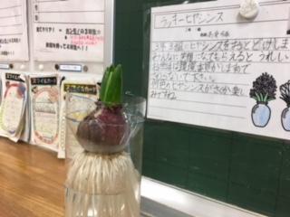 環境委員会の子ども達が、自分たちで準備し「ハッピーヒヤシンス」「ラッキーヒヤシンス」と名付けたヒヤシンスの球根を各クラスに送りました。それぞれのメッセージカードには、津幡っ子が、明るい気持ち・優しい気持ちになってほしいという願いが書かれていました。何色の花が咲くのか、クラスみんなで楽しみに待ちましょうね。